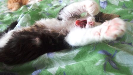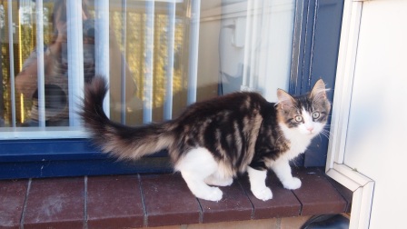 Jolie was het enigste poesje in een nestje van zes kittens; het eerste van Gitta. Van tevoren had ik besloten een poesje te willen houden, en dat werd dus Jolie, want meer keus was er niet. De kittens hadden een moeilijke start: Gitta gaf te weinig melk, ze kregen diarree en groeiden dus heel slecht. Pas na een week of acht begon het er een beetje op te lijken. Jolie is nog steeds geen dikzak, maar ze is gezond en speels, en ze spint als de beste. Een nieuwe generatie in Cattery Jarinina :-)