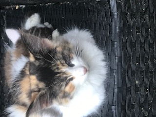 Ik had bij Kjaere een tortie smoke met wit poesje besteld. En die werd ook geboren. Naast twee leuke zwartwite jongens was ze daar: Rhiannon. Dat ze zou blijven stond direct vast. Dit was Kjaere's cadeautje aan mij uit haar 5e en laatste nestje. Enkele maanden na de geboorte van Rhiannon en haar broers werd Kjaere gesteriliseerd.